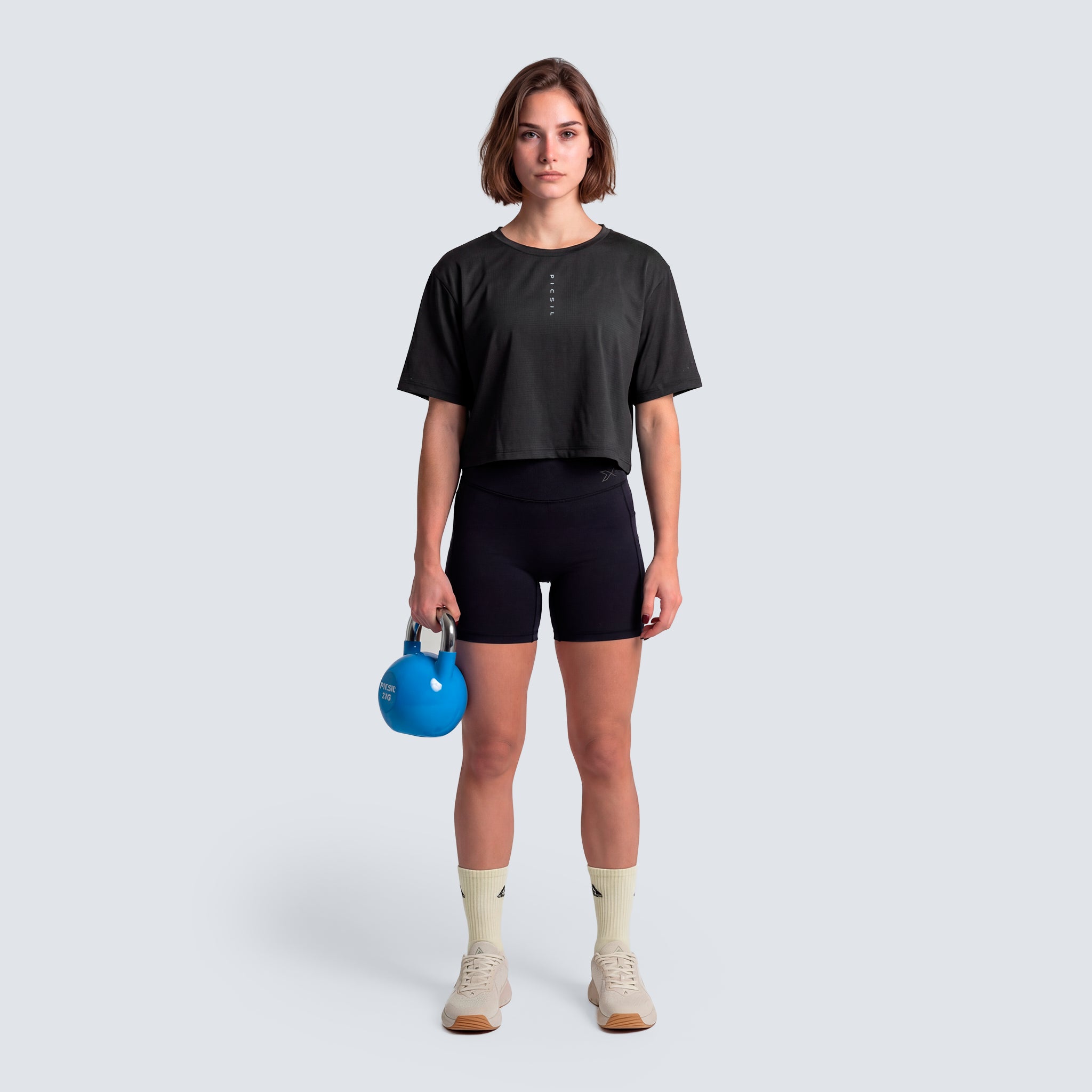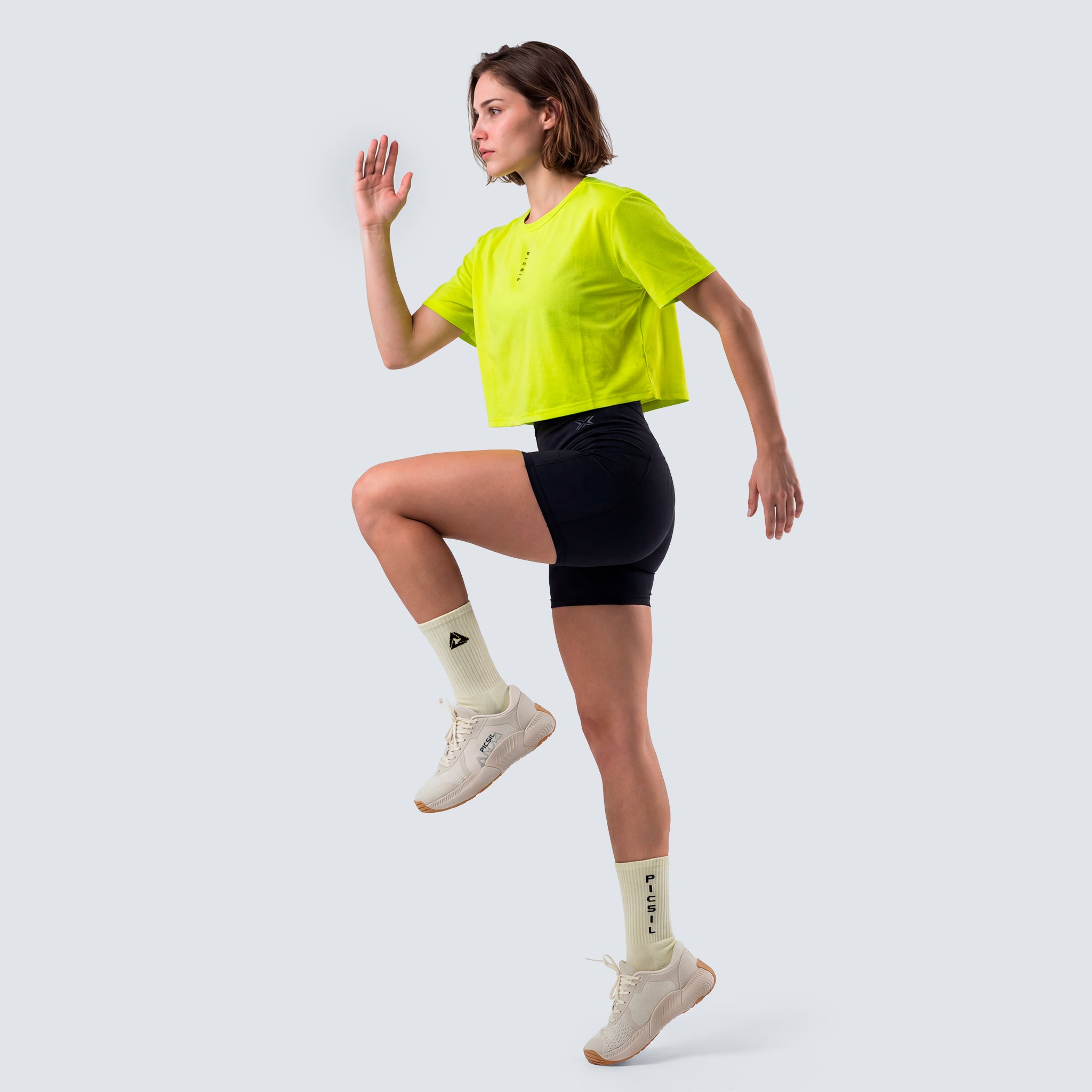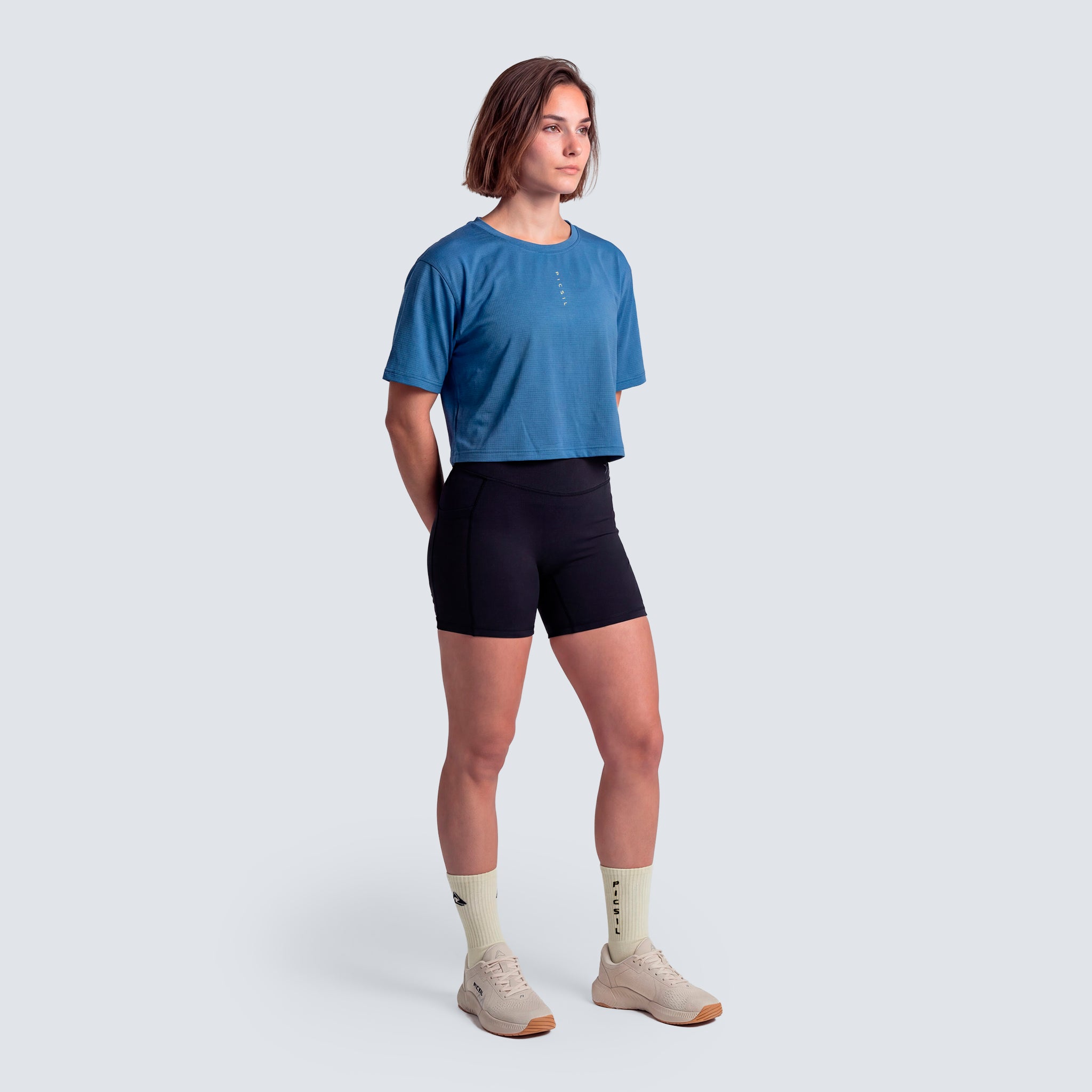 A technical, lightweight, and elastic crop designed to accompany every movement with total freedom, breathability, and a fit that enhances your performance.